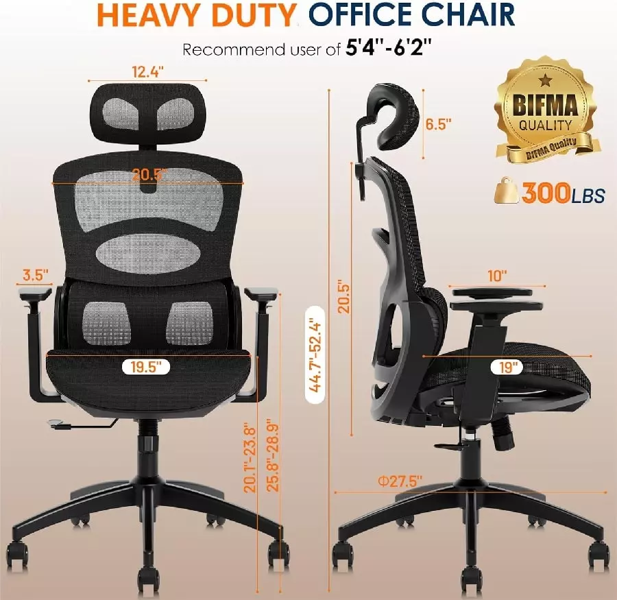 Gabrylly Ergonomic Office Chair is quite flexible, with a backrest that can be adjusted to 4 different levels, helping to optimize the support for each person. The Gabrylly chair series has passed many SGS and BIFMA quality tests, with a load capacity of 300 LBS. So, ít is best office chair for heavy person.