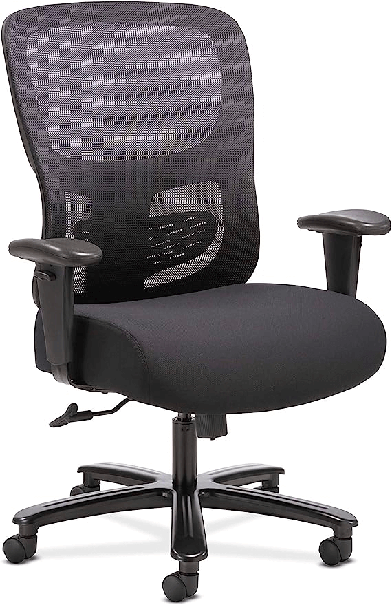 This task chair includes a high back, a lumbar support that can be adjusted, a wide seat, and enough weight capacity. It is ideal for home offices.
